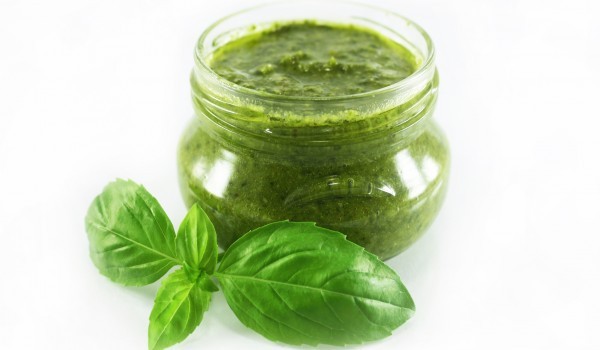 Запечете кедровите ядки в тиган без мазнина, докато започнат да ухаят. Измийте босилека и го подсушете. Обелете чесъна. Пюрирайте заедно тези съставки и добавете след това на тънка струйка зехтина пр...