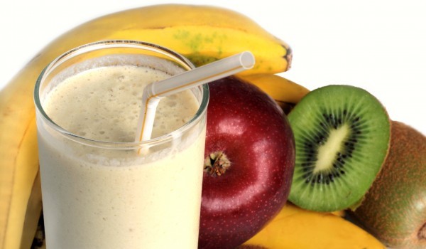 Обелете и нарежете банана на парчета. Добавете останалите продукти и разбийте с пасатор или шейкър. Охладете и поднесете като освежаваща напитка или следобедна закуска за вашите деца.