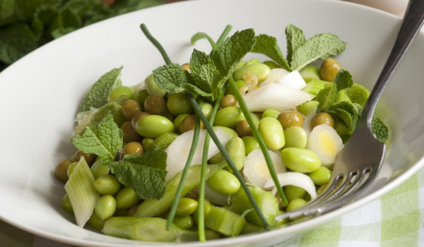 Зелената салата се измива и се разделя на листа, които се нареждат в чиния за сервиране. Картофите се обелват, нарязват на кубчета и заедно със зеления фасул се сваряват в подсолена вода. Отцеждат се...