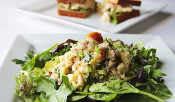 Ябълките се измиват, почистват и нарязват на кубчета. Поливат се със сока на лимона и се добавят нарязаните на ситно орехови ядки, целина и парченцата риба. Салатата се залива с дресинг, приготвен от...