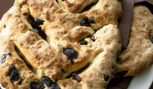 Продуктите за закваската се смесват, разбъркват се и се оставят да се надигнат. Приготвя се маслинената смес, като маслините се нарязват, заливат се със зехтина и се добавят подправките. Сместа се ос...