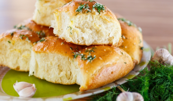 От маслото, пасираният чесън и магданозът се приготвя чесново масло, което се оформя на руло, завива се във фолио и се оставя във фризер. Маята се разтваря в млякото, яйцето, зехтинa и захарта и се р...