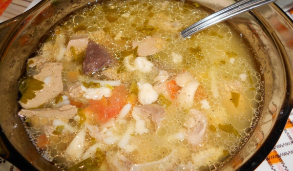 Агнешката главичка се сварява в подсолена вода и се обезкостява. Месото се свръща в бульона и се добавя измитите и нарязани спанак, киселец и коприва. Приготвя се запръжка от нарязаният на ситно лук,...