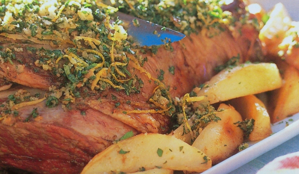 Сложете агнешкото бутче в дълбок съд, залейте го с течните съставки, добавете половината чесън и го оставете да се овкусява за 3 часа или за 1 нощ на хладно покрито. Загрейте фурната, нарежете всеки...