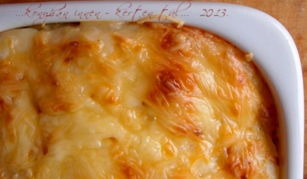 Обелете алабаша и го нареже на кубчета, след това го сложете да ври 5 минути. Загрейте млякото. Разтопете маслото заедно с брашното в един тиган, добавете малко сол, поръсете с орехи и изсипете топлот...