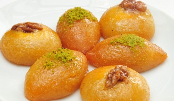 Добре е първо да приготвите сиропа, за да има време да се охлади. Смесете водата и захарта и кипнете. Варете сиропа 5 минути на умерен огън, добавете лимона, нарязан на филии и варете още 3 минути. Св...