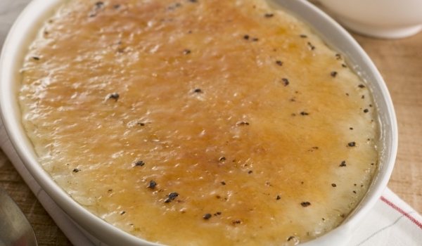 Смесете прясното мляко, захарта, ванилията и течната сметана и кипнете на умерен огън. При непрекъснато бъркане добавете гриса на тънка струйка. Разбърквайте енергично и варете на тих огън до сгъстява...