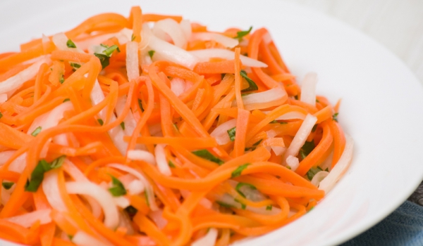 Морковите се поръсват с лимоновия сок. Прибавя се празът, зехтинът, оцетът, кафявата захар, сусамовото олио се смесват. Осолява се и се залива със сосът. Сервира се с препечен хляб.