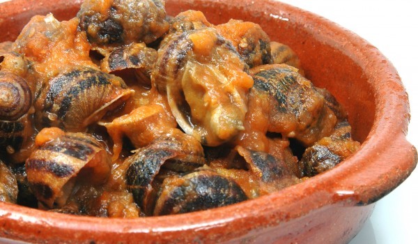 Охлювите ги нарязваме на дребни парчета и запържваме в сгорещената мазнина. Прибавят се нарязаните лентички тиквички и лук. Сместа се пържи за 5-6 минути. Добавят се нарязаните на лентички чушки и отн...