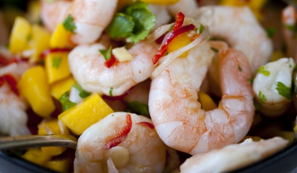 Прави се разрез по дължината на всяка скарида. Тъмните жили се махат и се оставят настрани. Фъстъченото олио се загрява и в него се запържва зеленият лук. Прибавят се скаридите, след това се прибавят...