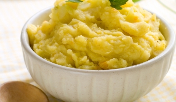 Сварете и обелете картофите. Намачкайте ги или ги стрийте с вилица и добавете подправките. Хубаво разбъркайте и залейте с прясното мляко, така че да се получи гъста каша. Разбийте киселото мляко и го...