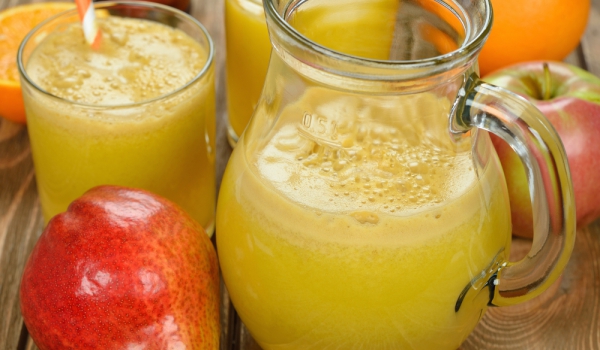 Обелете крушите и отстранете семенната им част. Нарежете ги и ги сложете в блендер. Добавете портокаловия сок, изцеден от 4 средни по размер портокала и захаросания джинджифил, нарязан на парченца....