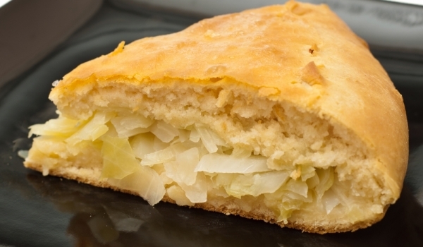 Замесва се тесто от брашното, част от мазнината, водата и солта. Разделя се на 2 топки и се разточва на 2 кори. В останалата мазнина се задушава нарязаното зеле. В намазана с мазнина тавичка се слаг...
