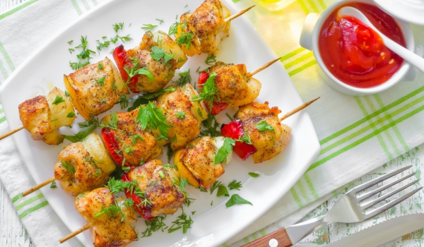 Пуешкото се нарязва на едро. Ментата и зеленият лук се режат на ситно. Джинджифилът се настъргва на ситно. Портокалът и лимонът се изцеждат. Чушките се нарязват на ситно. Всичко се смесва и се полива...