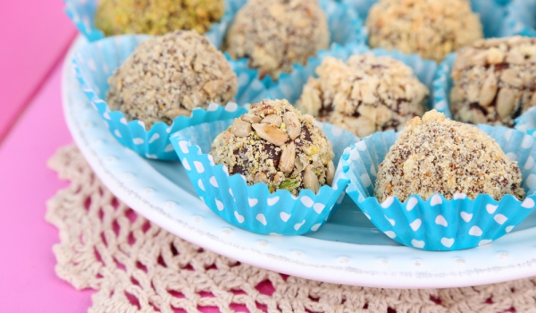 Смилат се бадеми, добавя се мед на вкус. Взема се малко от тестото и се сплесква върху дланта. В средата се слага четвърт сушена кайсия. Кайсията се загръща от всички страни и се оформя топче. След...