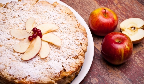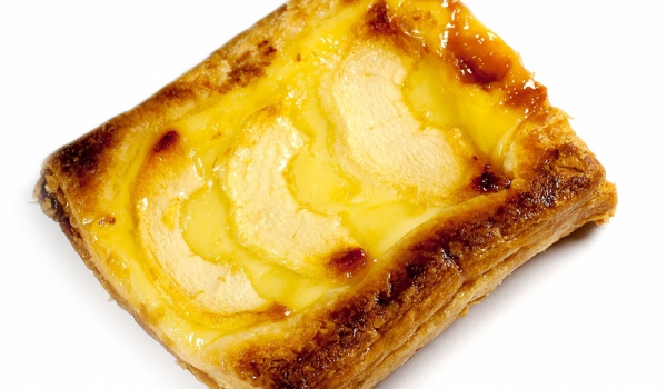 Ябълките се обелват и се режат на дебели резени. Тестото се разточва леко и се реже на квадрати. Слагат се в тава и върху всеки квадрат се слагат резени ябълки. Поръсват се със захар и канела и се пе...
