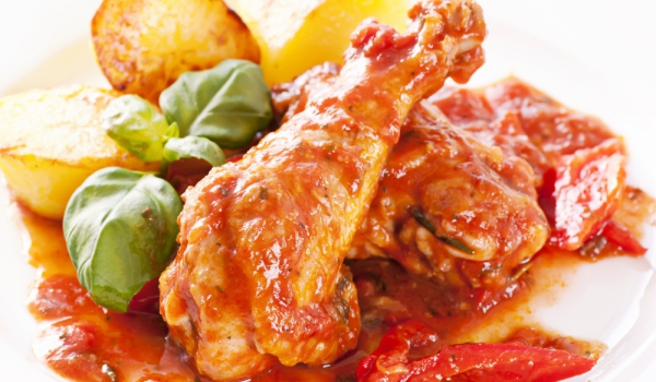Бутчетата се натриват със сол и черен пипер. Приготвя се сос, като чушките и лукът се нарязват на ситно и се запържват 5 минути. Добавя се виното, кетчупът, нарязаният на ситно босилек, солта и захар...