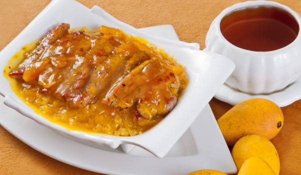 Нарежете пилешкото филе на късове и оставете да се маринова поне за час в смесените соев сос, зехтин, лимонов сок, мащерка, майорана, къри и малко сол на вкус. За да приготвите сладко-киселия сос пър...