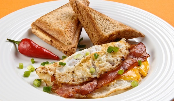 Разбъркайте добре яйцата заедно със сол, черен пипер, малко чубрица, кетчупа и горчицата. Така приготвената смес се сипва върху тефлонов тиган с широко дъно, в който сте загряли 2 с.л. олио. Добавет...