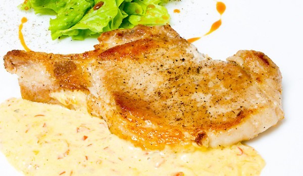 Смесете всички продукти без месото, разбъркайте добре. Изсипете всичко в една тавичка, като отгоре наредите и пържолите и запечете до изпаряване на водата от киселото мляко. Обърнете пържолите като п...