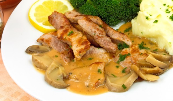 Овкусете свинското филе с черен пипер, сол и кимион на вкус. След това ги оваляйте леко в царевично брашно и ги изпържете до зачервяване. Сложете брашното в тенджера и го "запечете" до зачервяване пр...