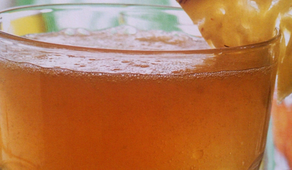 Разбийте в миксер първите 4 съставки. Излейте сместа в чаша, напълнена с лед и в последния момент долейте със сода на вкус. Декорирайте чашите с резенчета ананас и поднесете.