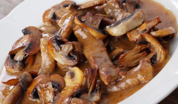 Свинското оставете на по-големи пържоли или гo нарежете на едри хапки или ленти. Пасирайте чесъна със 80-100 мл олио, горчицата, 100 мл бяло вино, по 1 ч.л. сол, черен и червен пипер и скълцания ситно...