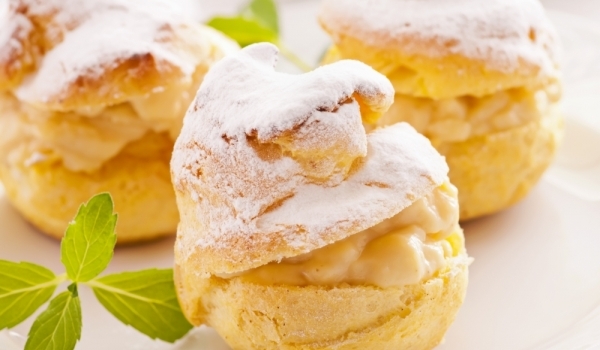 Загрейте до кипване в съд на котлона 300 мл. вода, маслото, щипка сол и захар да заври. След това добавете наведнъж брашното и бъркайте енергично, докато сместа започне да се отлепя от стените на съда...