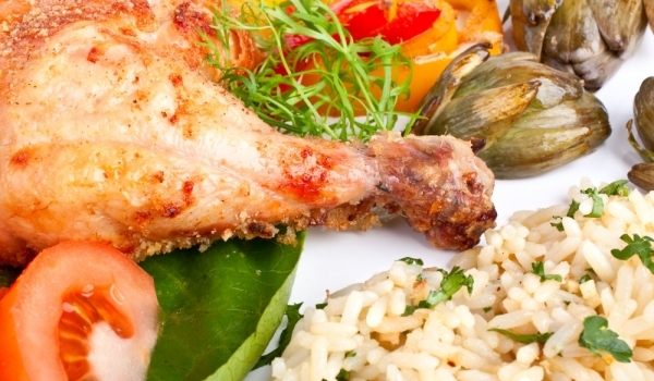 Сварете предварително пуешките бутчета до готовност, след това ги отцедете и подсушете и поръсете с подправки. Измийте ориза. Запържете в малко мазнина скълцаните лук и чесън. Добавете ориза, разбърка...