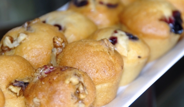 Разбийте мекото масло със захарта на гладък и пухкав крем. Добавете яйцата едно по едни, като разбивате хубаво след всяко. Пресейте брашното с бакпулвера и го добавете на порции към сместа. Накрая до...