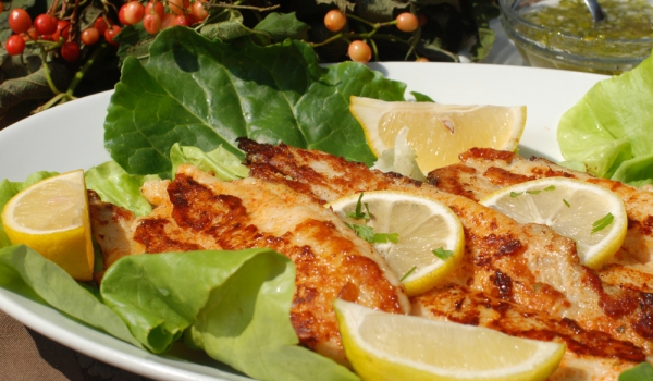 Филетата сок поръсете със сол и прясно смлян черен пипер. Полейте ги със сместа от соев сок и балсамов оцет и ги оставете в купа за 15 минути в хладилник, като ги обърнете на 2-3 пъти. Загрейте скара...