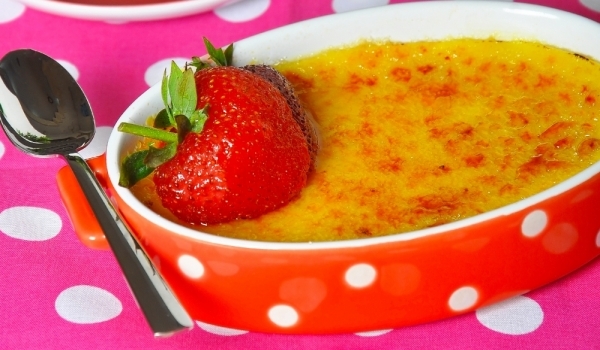 В шест купички се разпределят измитите и нарязани ягоди. Отгоре се разпределя киселото мляко така, че да покрие ягодите. Захарта се разтопява с 2 супени лъжици вода и се оставя леко да се карамелизир...