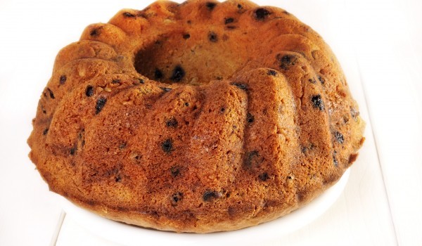 Разбийте маслото с яйцата. Добавете прясното мляко, захарта и останалите продукти, като най-накрая добавите и стафидите и орехите. Изсипете сместа в намазнена форма за кекс и сложете да се пече в уме...