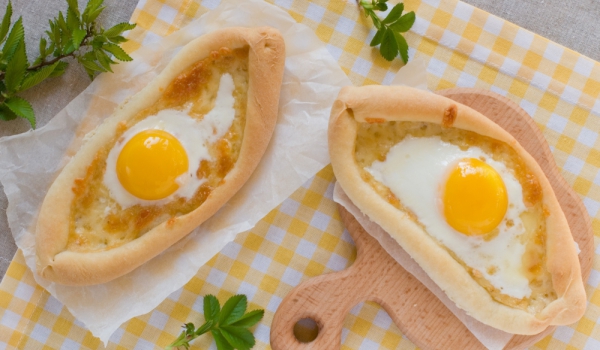 Сиренето се настъргва. Десет яйца се сваряват и се обелват. Всяко яйце се разрязва на две по дължина. Тестото се разрязва на квадрати. Върху всеки квадрат се слага сирене и две половинки яйце. Тестот...
