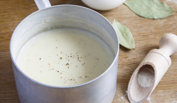 900 мл от прясното мляко сложете на котлона да кипне. Бялото брашно и царевичното нишесте се разтварят по отделно в останалите 300 мл мляко. Добавяме ги с непрекъснато бъркане към кипналото мляко, бе...