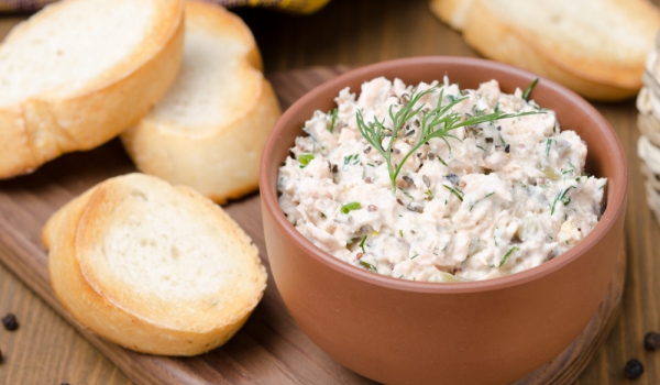 Първо разбийте крема сиренето, лимоновия сок и табаско соса в малка купичка с помощта на миксер, докато стане гладка смес. Прибавете останалите продукти и подправете.