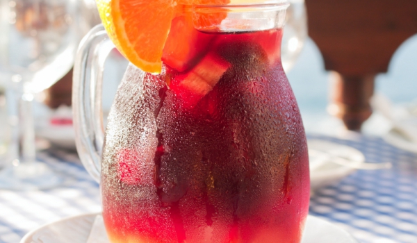 Всички плодове се нарязват на кубчета. Портокалът и лимонът се измиват много добре, но не се белят. Слагат се в кутия с капак и за 30 мин във фризера. В голяма стъклена купа или кана се смесват плодов...