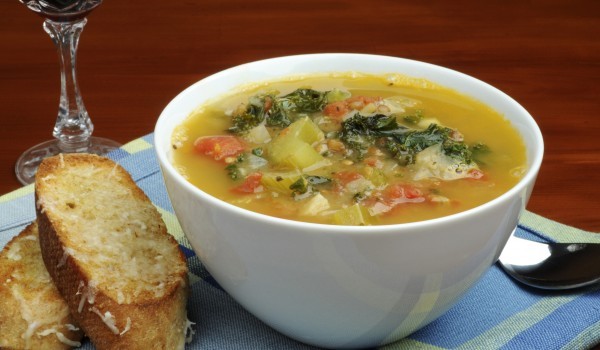 Загрявате олиото в голям тиган и прибавяте лука и чесъна. Бъркате, докато омекнат. Добавяте кимиона и бъркате до получаването на ароматна смес. След това сипвате бульона и слагате да ври. Когато зав...
