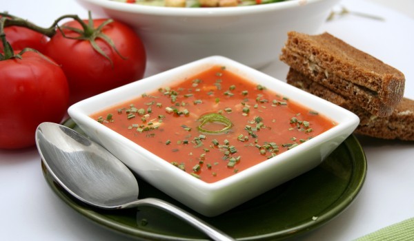 Поставете доматите във вряща вода за минута, след което ги отцедете, обелете и нарежете на едро. Отрежете зелената част на главата копър и я запазете за украса. Бялата част отрежете на 4. Изхвърлете с...