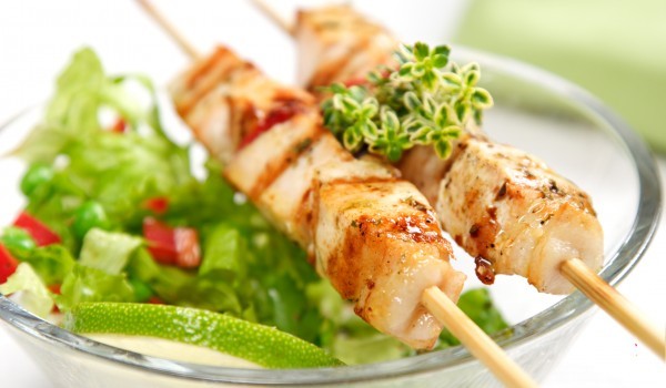 Нарежете филето на кубчета, ананаса — на парчета. Нанижете на дървени шишчета филето и ананаса, като ги редувате. Леко подгрейте меда, смесете го с бирата, ананасовия сок и соевия сос. Сложете шишче...