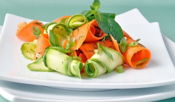 Тиквичките и морковите се нарязват на ивички. Добавят се накълцаните чесън, копър и магданоз. Салатата се полива със зехтина и оцета и се посолява.