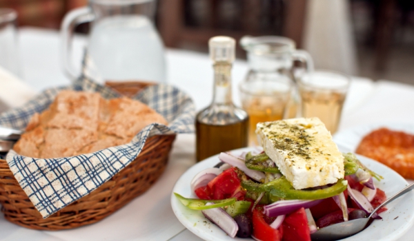 Доматите се обелват и заедно със стария лук и чушката се нарязват на дребно. Сиренето се реже на 2 парчета и се запича на фурна за 10 минути, като се напръсква с малко зехтин. Добавя се в салатата...