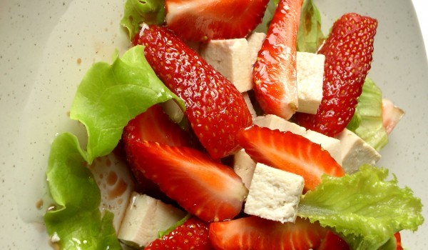 Ягодите се измиват и нарязват на половинки. Моцарелата се реже на малки парченца. В чиния накъсайте марулята, върху нея подредете нарязаните ягоди, моцарела и залейте със зехтин и малко изстискан лимо...