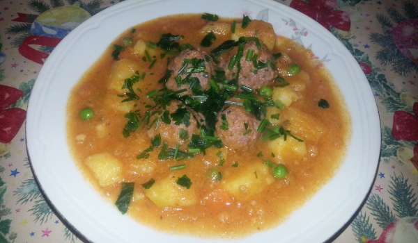 Омесваме каймата със сол, черен пипер и чубрица и оформяме не много големи кюфтенца. Нарязваме лука и морковите на кръгчета или полукръгчета. Слагаме олио в тенджера с дълбоко дъно (за да не загори) и...