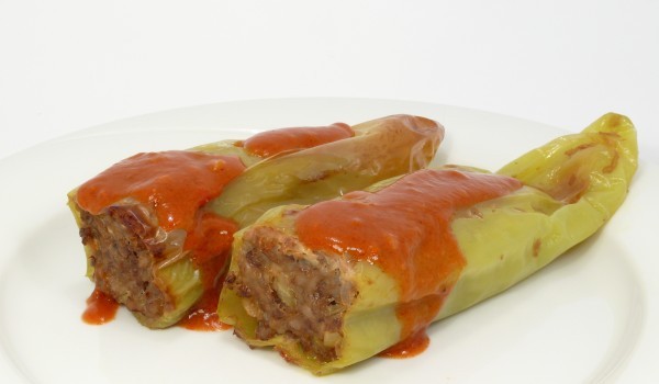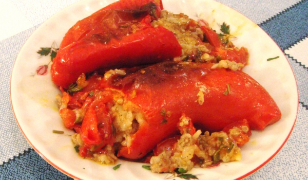 Отрежете капачетата на пиперките и ги почистете от семето. Нарежете месото на малки парчета и го задушете в мазнина. Надробете сланината на късчета. Сложете в купа сиренето, месото и сланината. Под...