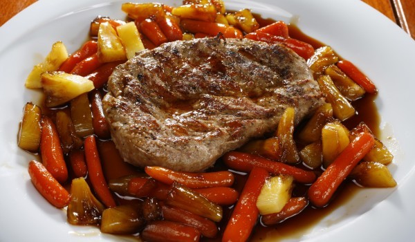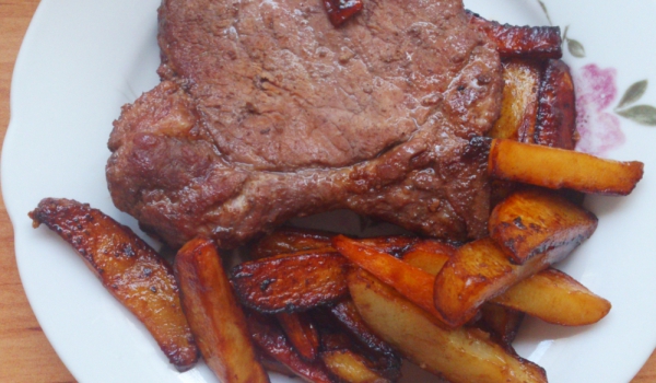 Овкусете пържолите с малко сол, млян шарен пипер и соев сос, като добре ги натриете. Загрейте олиото в тиган с незалепващо покритие. Сложете пържолите и ги запържете от едната страна леко, след което...