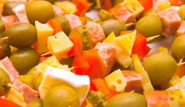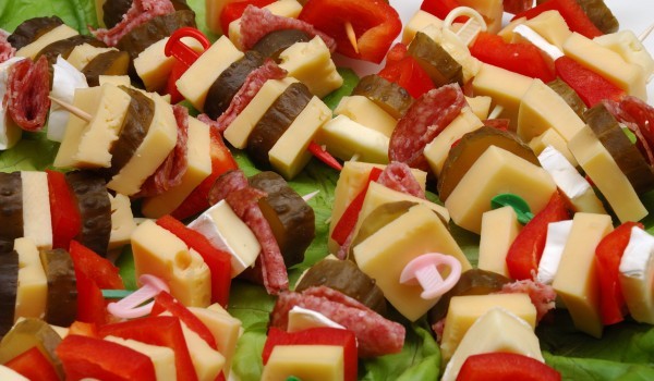 Продуктите са в пропорции, които предпочитате. Всичко се нарязва на неголеми квадратчета и кубчета и се нанизват на шишчета, като се редуват. Потапят се за кратко в смес от лимонов сок, бяло вино и с...