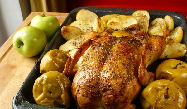 Измитите ябълки ги разрязваме на четвъртинки. Почистваме ги от сърцевината им и пълним с тях патицата. Зашиваме отвора със здрав конец, посоляваме и намазваме със сметана, след което я слагаме в нама...